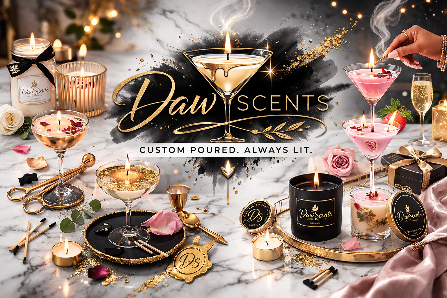 At DawScents, we don’t just pour candles, we pour experiences. Each piece is hand-poured to order and thoughtfully crafted in unique vessels, from classic mason jars to statement cocktail glasses.
